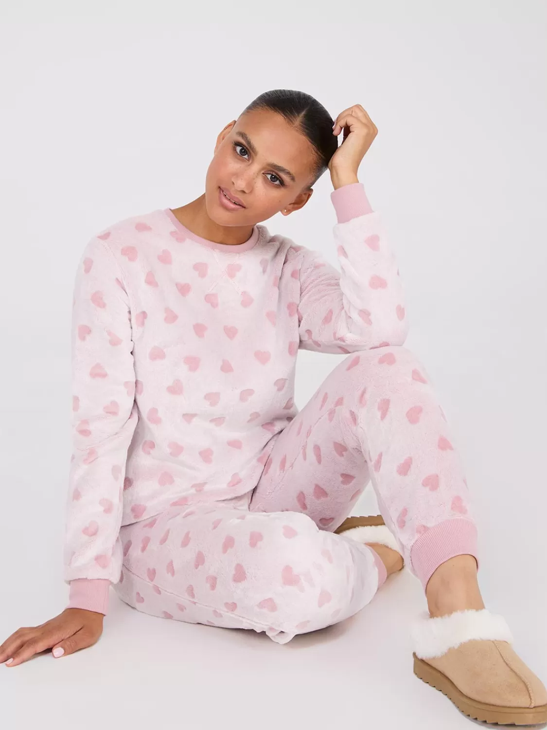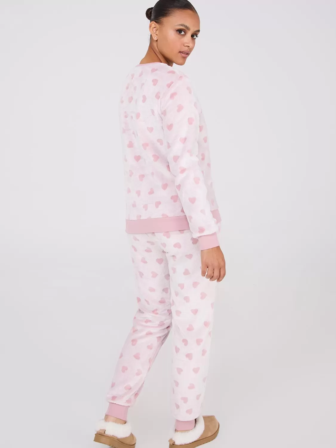 Suzy Shier Lounge & Pjs*Embossed Heart Pattern Plush Pajama Set