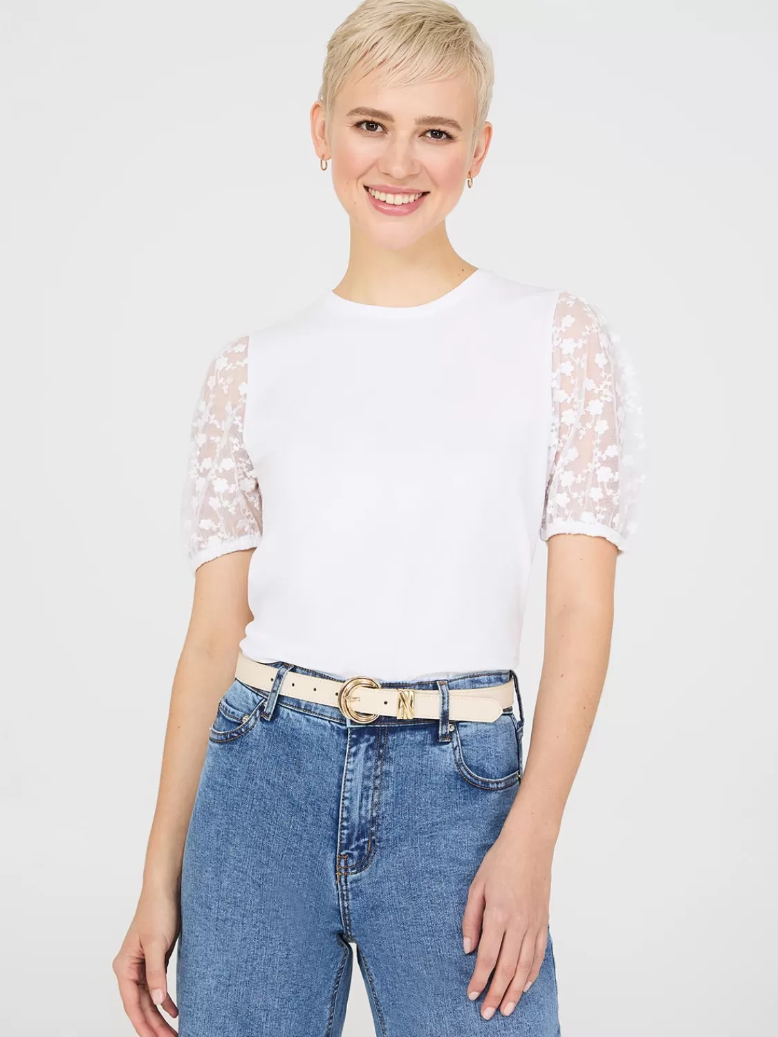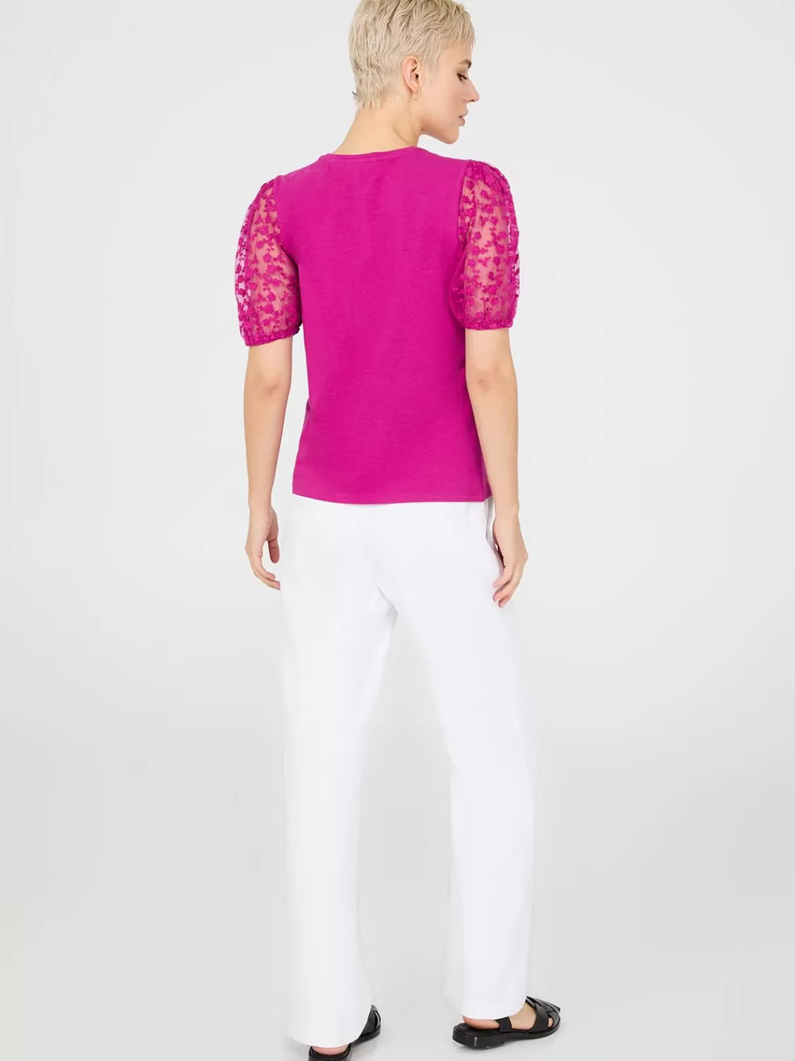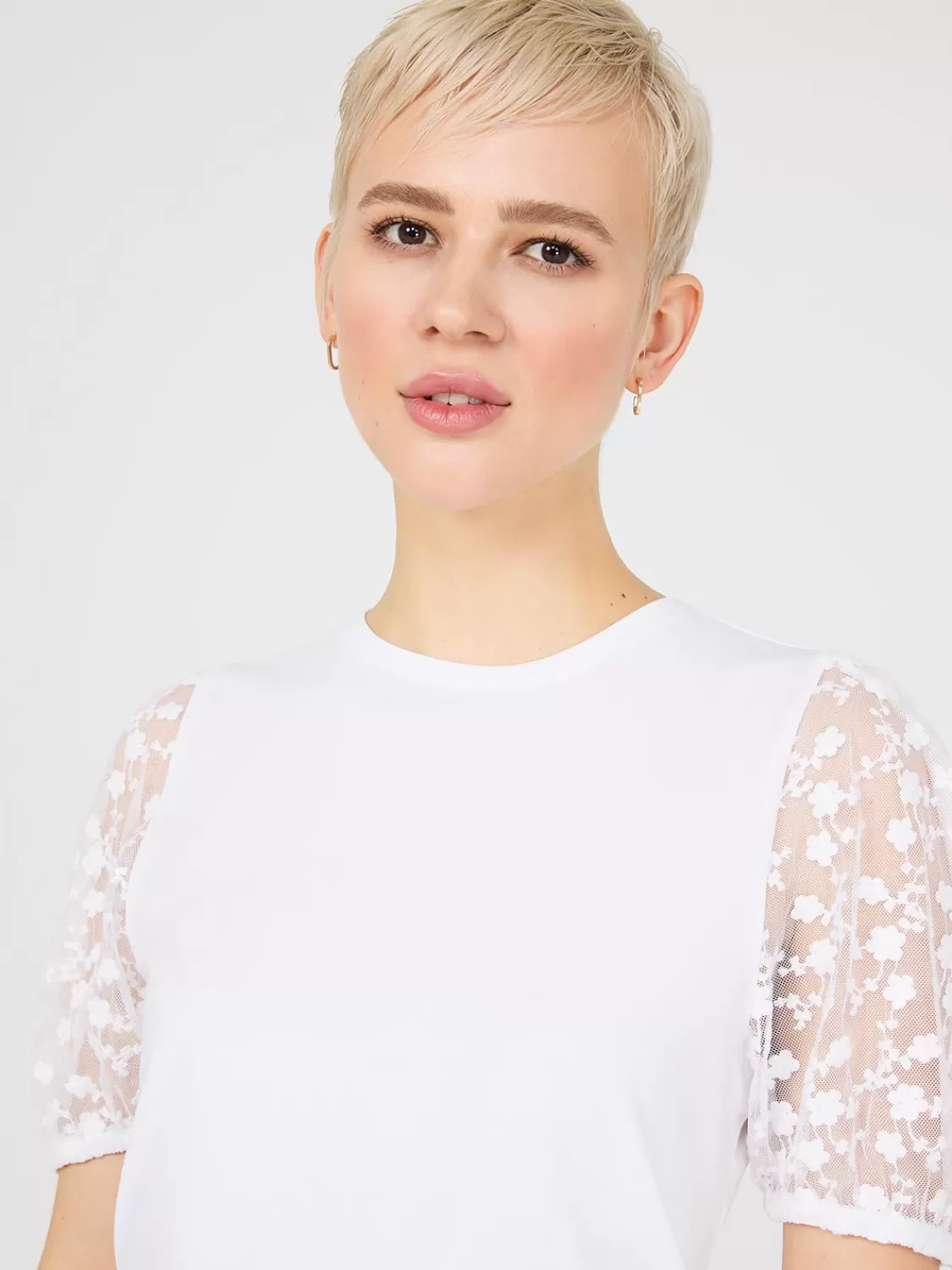 Suzy Shier Short Sleeve | Tank Tops & T-Shirts*Embroidered Mesh Sleeve T-Shirt