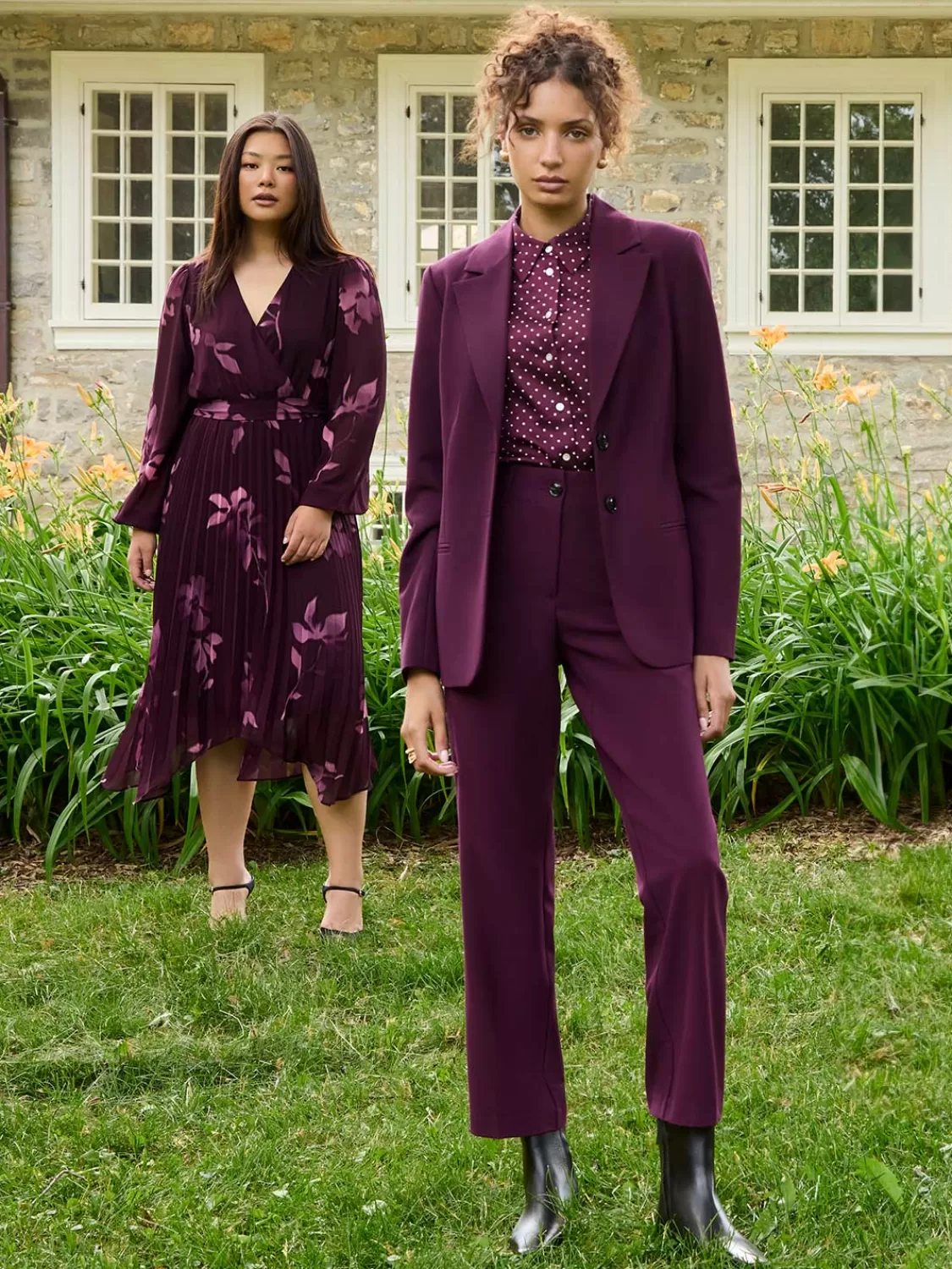 Our dot print satin button-front blouse has a new but subtle addition, with volume sleeves adding to the classic appeal …