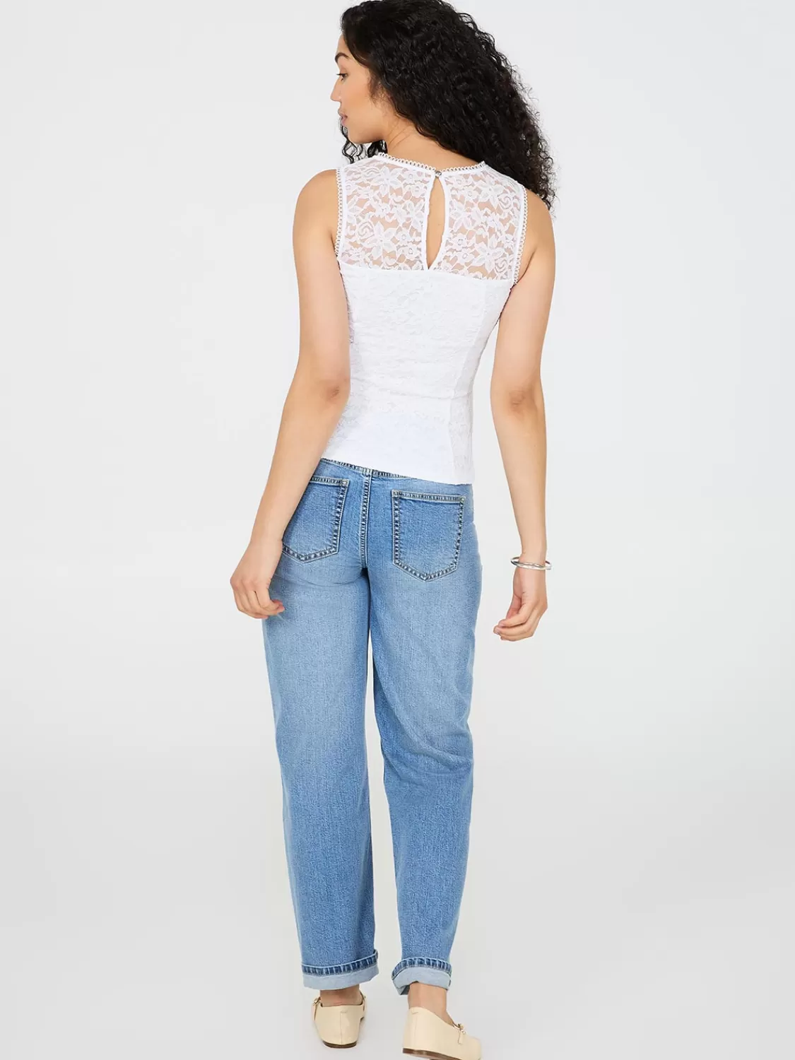 With a flattering silhouette, this sleeveless corded lace top has delicate detailing that makes it stand out in any room…